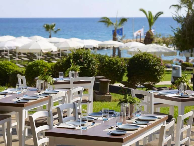 The Mediterranean Beach Hotel offers different types of accommodation for families. Options range from luxury rooms with inland or sea views to spacious family rooms that can accommodate up to two adults and two children.