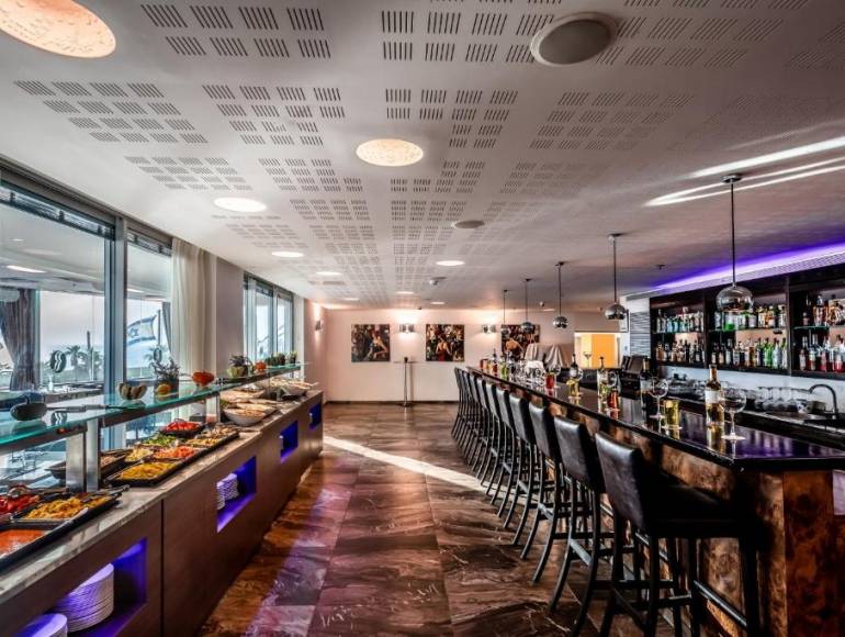A modern lobby bar completes the offering, providing the perfect setting to relax with a coffee or cocktail while admiring the sunset.