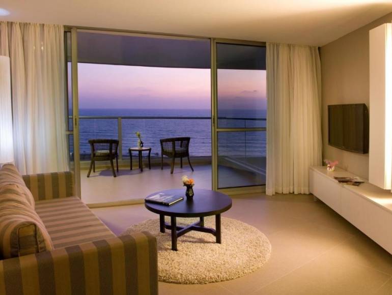 The Ramada Hotel & Suites Netanya, also known as David's Harp, enjoys a prime location in the heart of Israel's Mediterranean coast. Facing the sea, the hotel is close to Netanya's beaches, shops, downtown, and the main roads connecting Tel Aviv to Haifa.