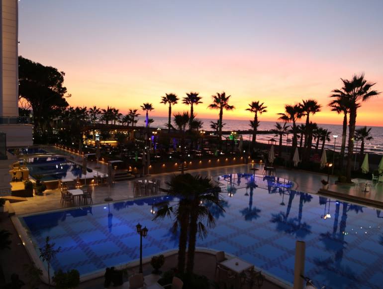 To keep the party going, join us after dinner for unforgettable themed evenings, either indoors or outdoors by the pools or on our stunning rooftop overlooking the sea. Enjoy live music with a DJ host, games, shows featuring local dances, Albanian folklore, and much more. Experience a magical Mimouna night straight out of One Thousand and One Nights, featuring the renowned singer PINHAS COHEN, a live oriental show, DJ sets, and spectacular performances!