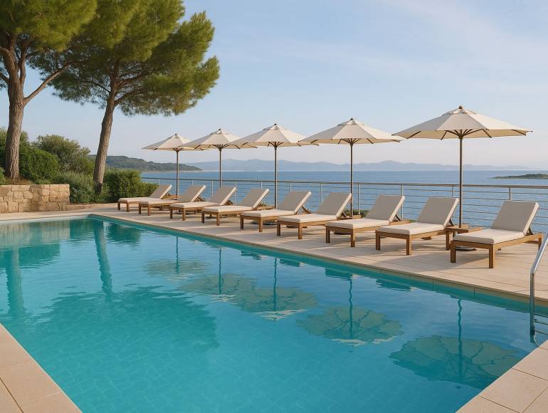 French elegance meets the wild beauty of Corsica. This year, for Passover, we invite you to our luxury retreat, just a stone's throw from the tip of Porticcio, where the crystal-clear waters of the Mediterranean meet the shores of the Gulf of Ajaccio.