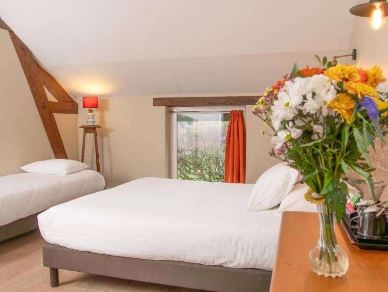 Cette ancienne ferme abbaye du XIVᵉ siècle, empreinte d’histoire, allie avec finesse élégance et sobriété.
