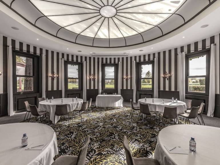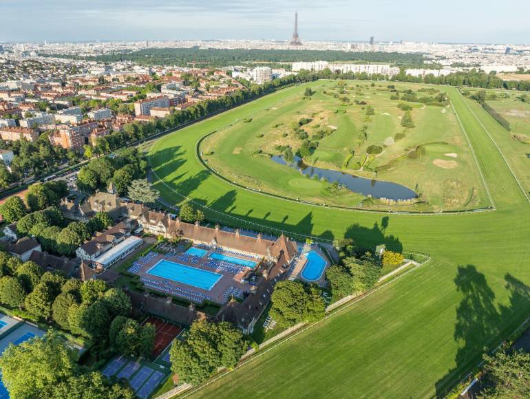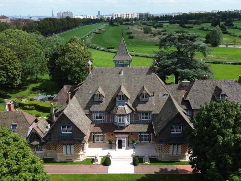 À 15 min de Paris Étoile, le Manoir est un magnifique ensemble de bâtiments de style anglo-normand, ancienne demeure de famille, classé monument historique implanté au cœur des 77 hectares arborés du Paris Country Club, offrant une perspective unique sur le Golf de Paris et l’hippodrome de Saint-Cloud.