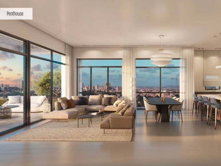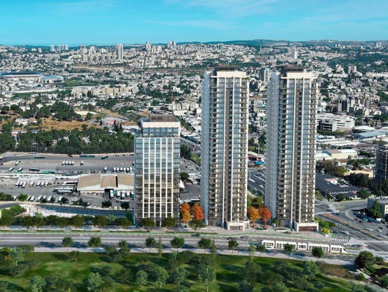 Profitez d'appartements offrant un espace de vie maximal, des balcons ensoleillés avec vue imprenable sur le paysage enchanteur de Jérusalem, ainsi que des prestations haut de gamme et un design rigoureux et sans compromis.