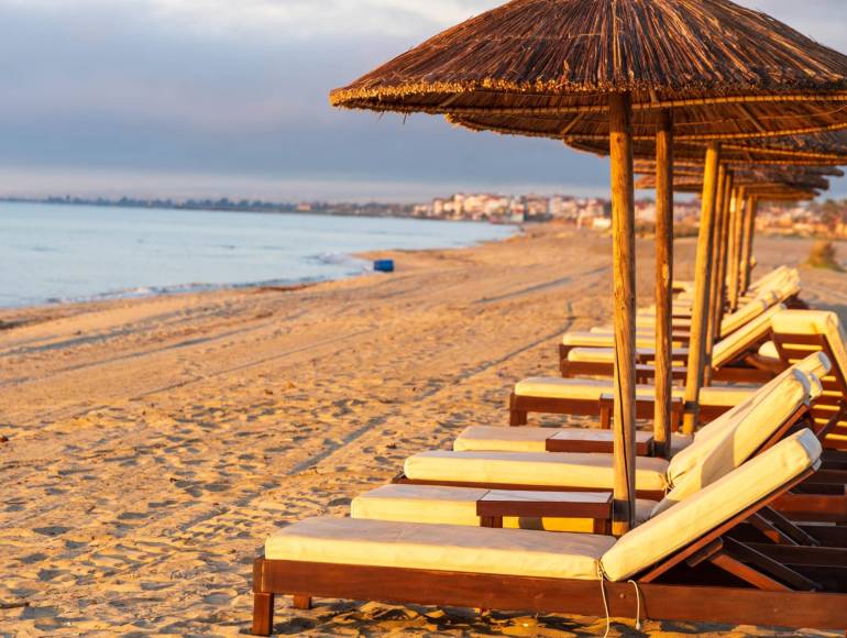 • Parasols et chaises longues sur la plage, gratuits pour les clients de l'hôtel