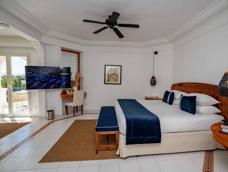 Chambres spacieuses et suites majestueuses allient élégance contemporaine et charme méditerranéen - l’espace ici se vit comme un luxe à part entière.