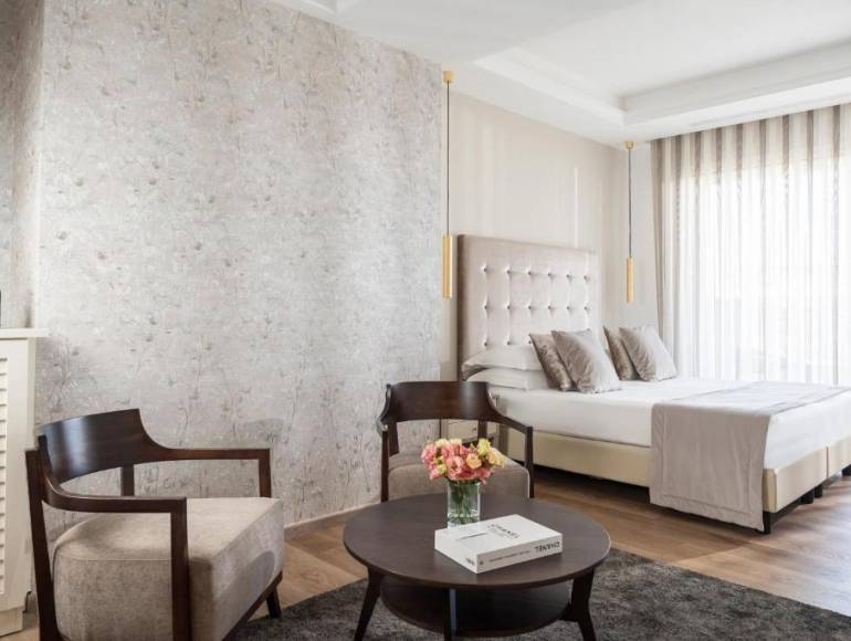 Les chambres, décorées avec raffinement, présentent de hauts plafonds et de larges fenêtres ornées de grands rideaux, ouvrant sur un balcon. Elles sont équipées d’une salle de bains privative, de la climatisation et d’une connexion Wi-Fi gratuite.
