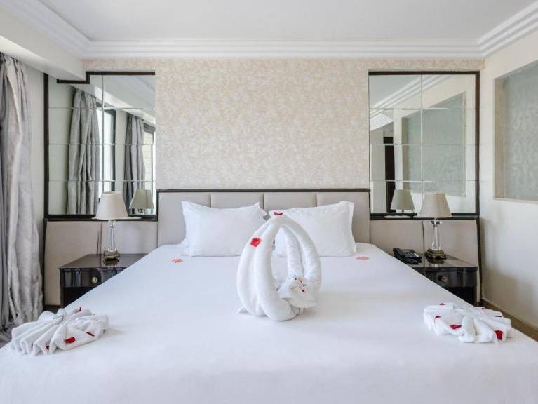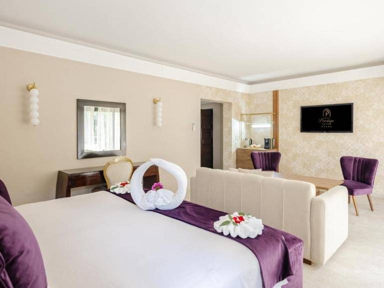 Choisissez parmi nos différentes typologies — chambres supérieures, chambres luxueuses, Junior Suites, Prestige Suites ou Suites Royales — toutes pensées pour vous offrir un véritable cocon de confort et de bien-être durant votre séjour.