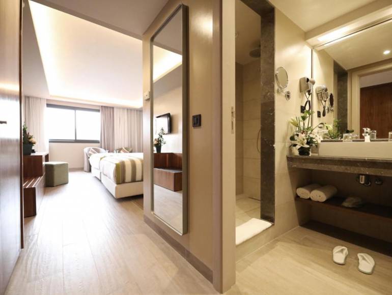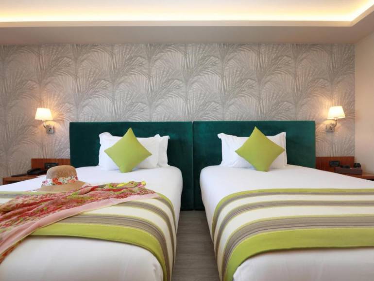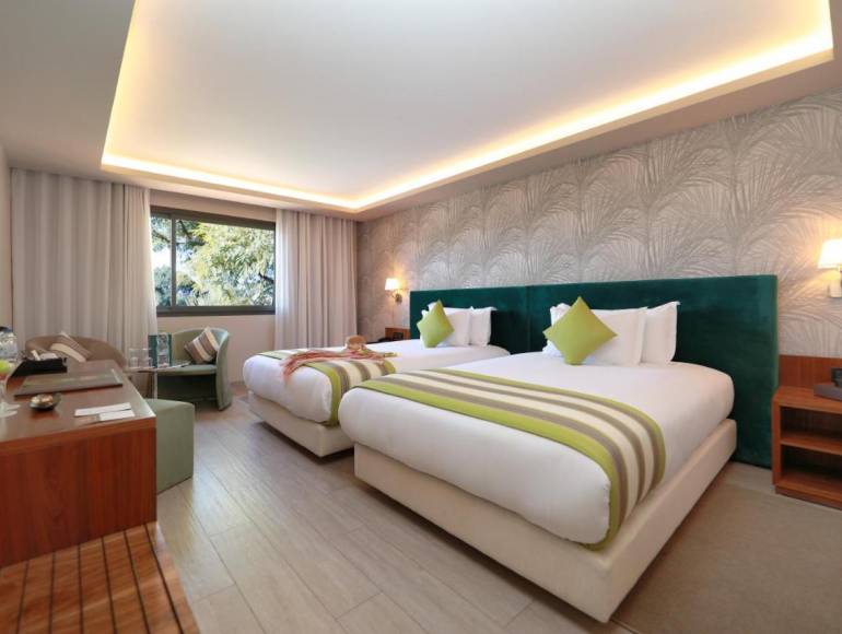 L’hôtel dispose de 384 chambres et suites, modernes et spacieuses, offrant pour la plupart tous les équipements nécessaires à un confort optimal : douche à l’italienne, aménagements pour les personnes à mobilité réduite, ainsi qu’une vue imprenable sur le magnifique jardin ou sur les piscines.