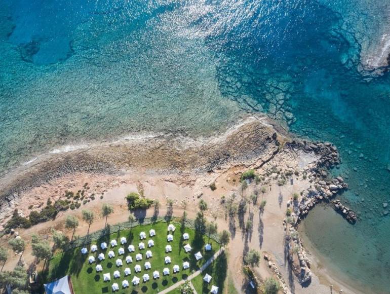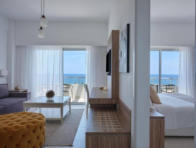L'Atlantica Sea Breeze s'épanouit le long d'une ravissante plage mêlant sable fin et formations rocheuses, au cœur d'une crique sereine. Vous y découvrirez une vaste piscine entourée de jardins soigneusement aménagés, le tout offrant un panorama exceptionnel sur les eaux azurées de la Méditerranée - un écrin parfait pour un séjour alliant détente et bien-être.