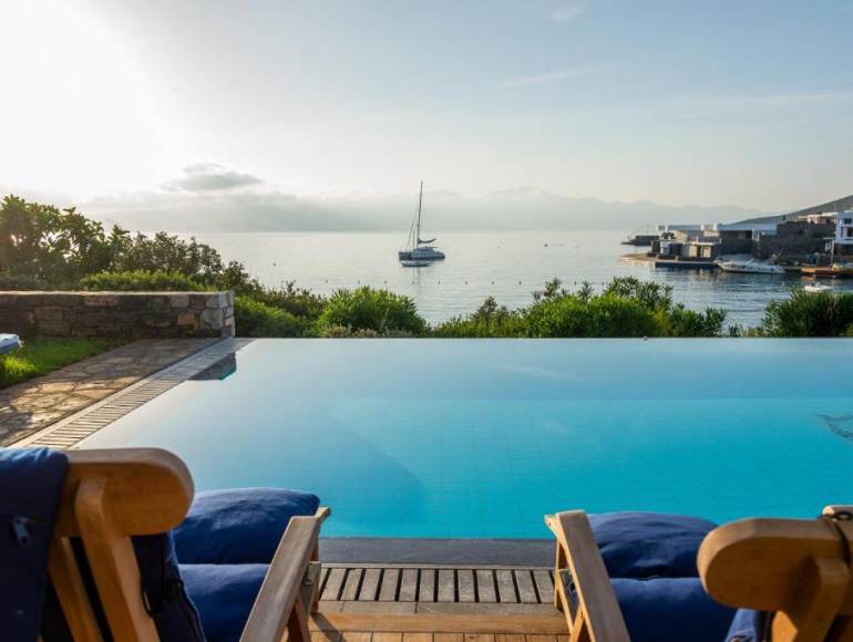 Découvrez l’Elounda Beach Palace, un joyau niché sur l’une des plus belles baies de Crète.