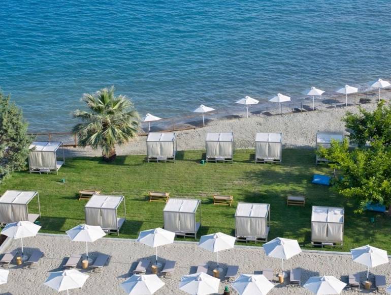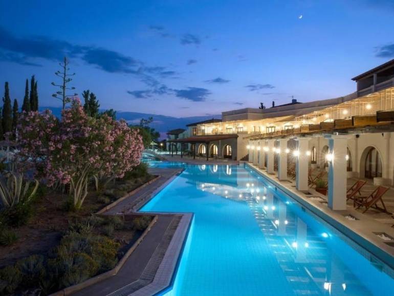 Proche d’Athènes situé sur une île idyllique, l’Eretria Hotel & Spa Resort, entièrement rénové, doté de belles chambres entièrement équipées. Nos élégantes suites avec vue sur la mer et piscine, nos chics bungalows avec piscine privée sont conçus pour que les familles puissent profiter à la fois de leur intimité se sentant comme chez eux dans nos charmantes installations.
