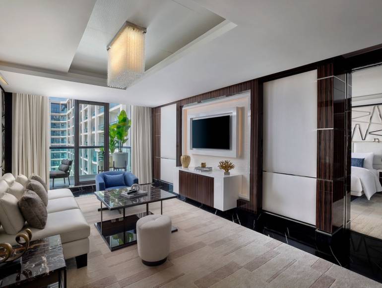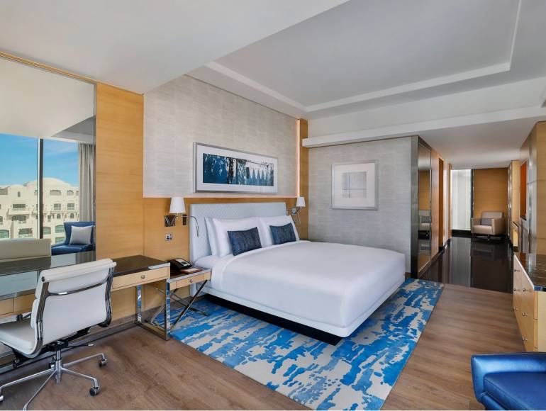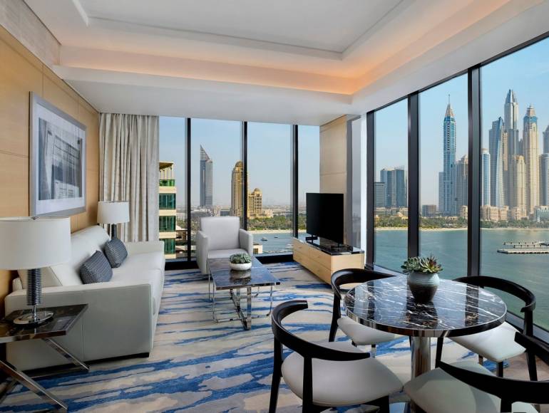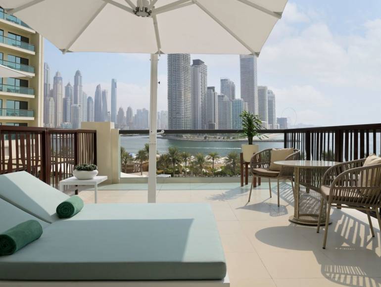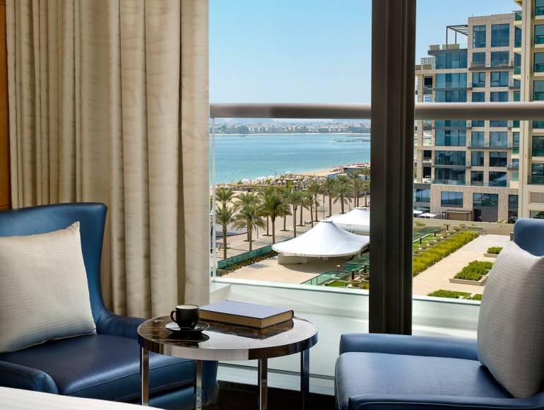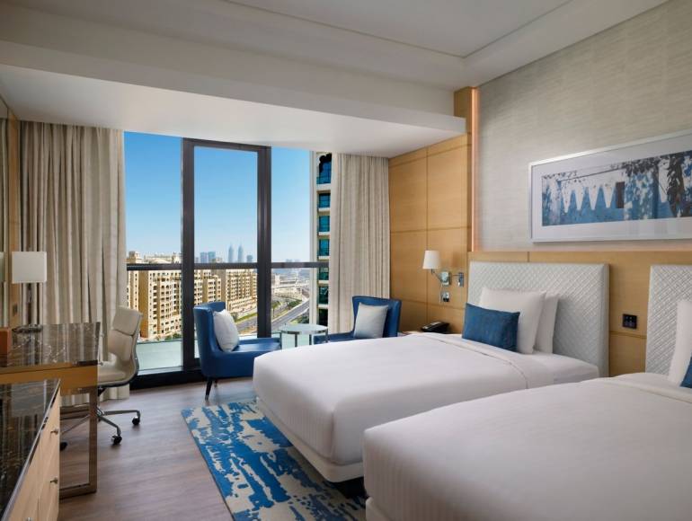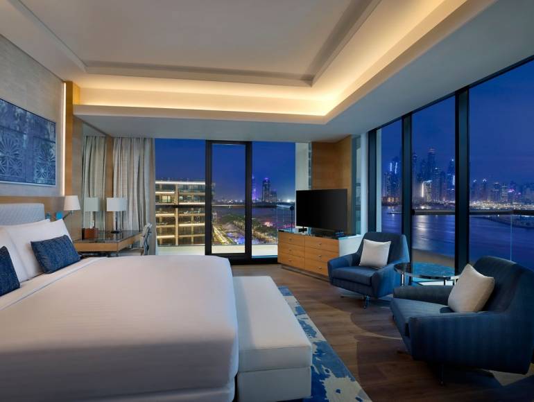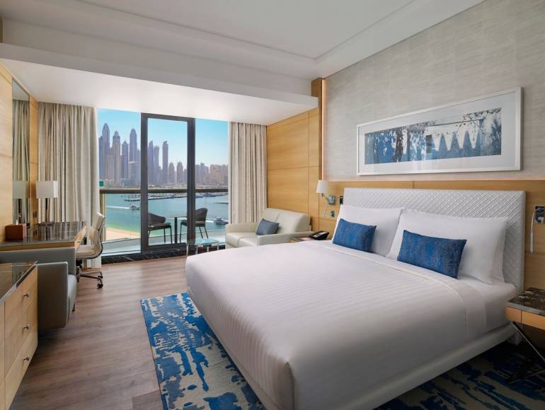 Les chambres et suites du Marriott Palm Dubaï sont lumineuses, spacieuses et décorées dans un style chic et apaisant. Leur vue sur la mer ou la piscine crée une atmosphère de vacances absolues.