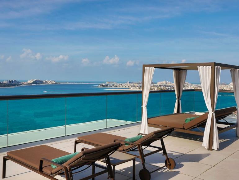 Le Marriott Resort Palm Dubaï est un splendide hôtel 5 étoiles posé sur la célèbre île en forme de palmier Face à la mer turquoise, il offre une plage privée, plusieurs piscines à débordement et une ambiance chic et détendue.