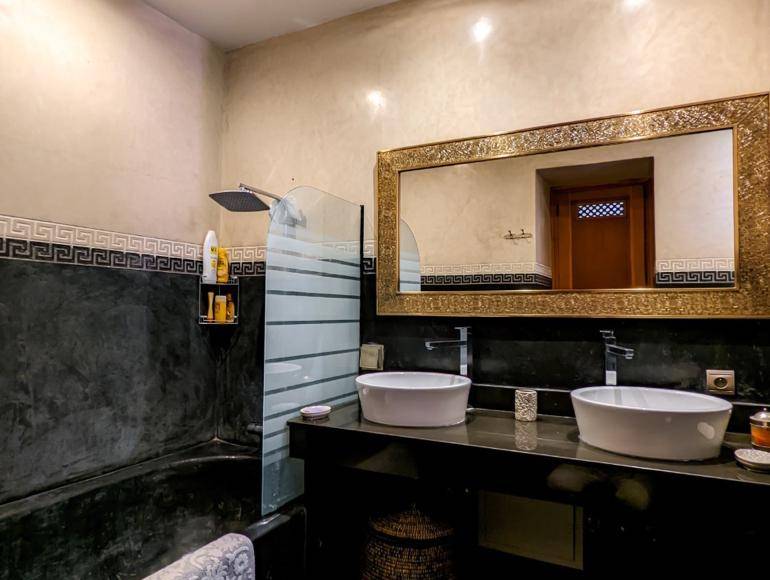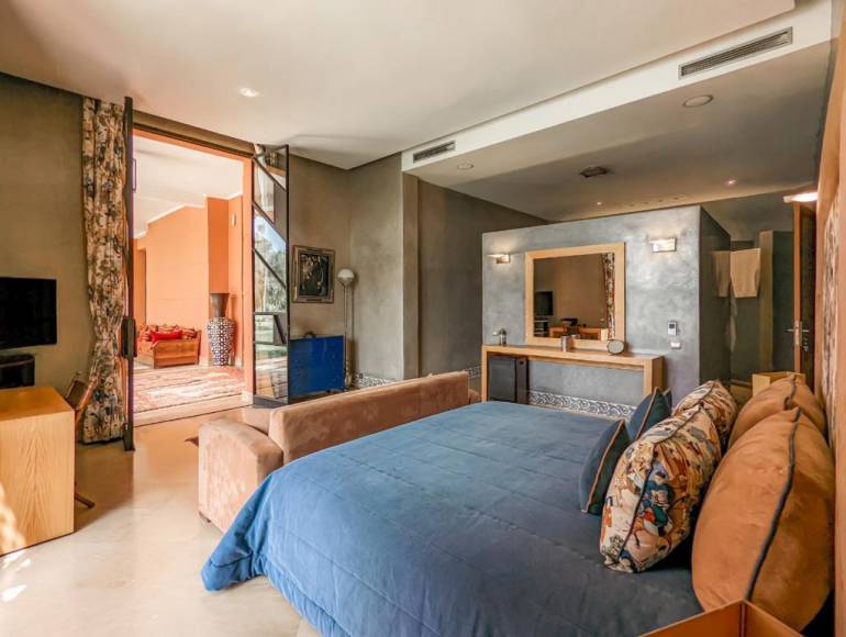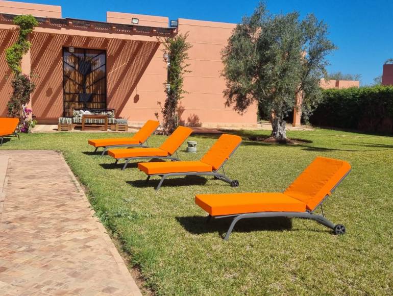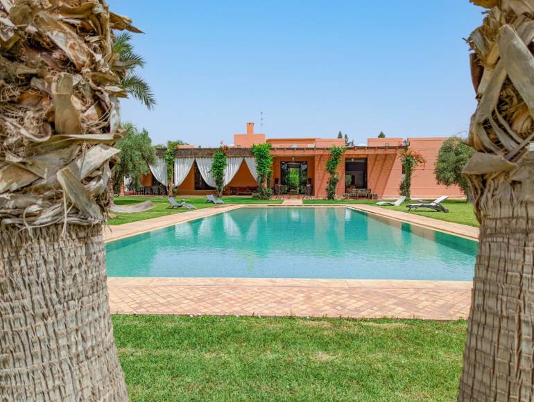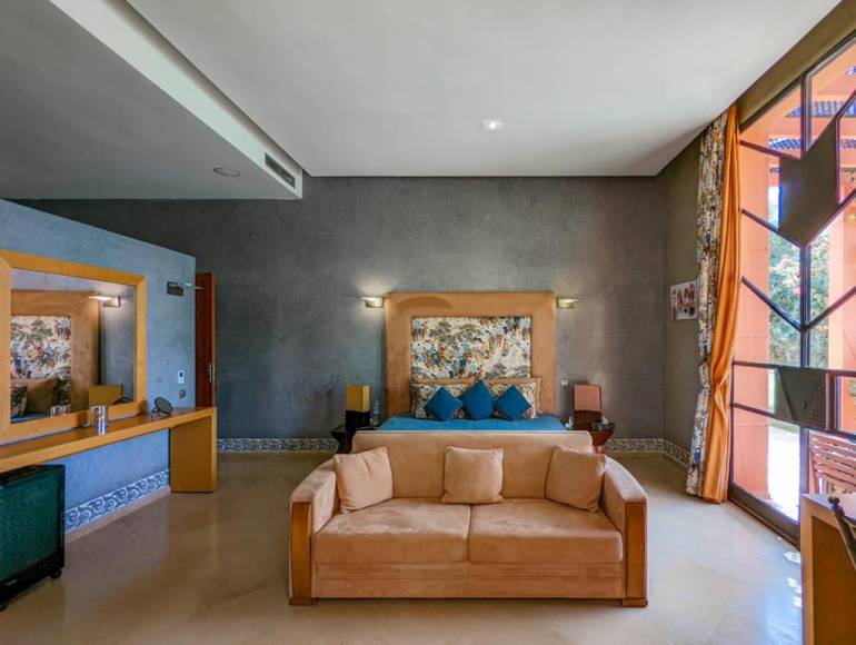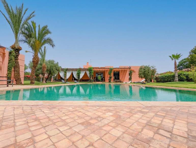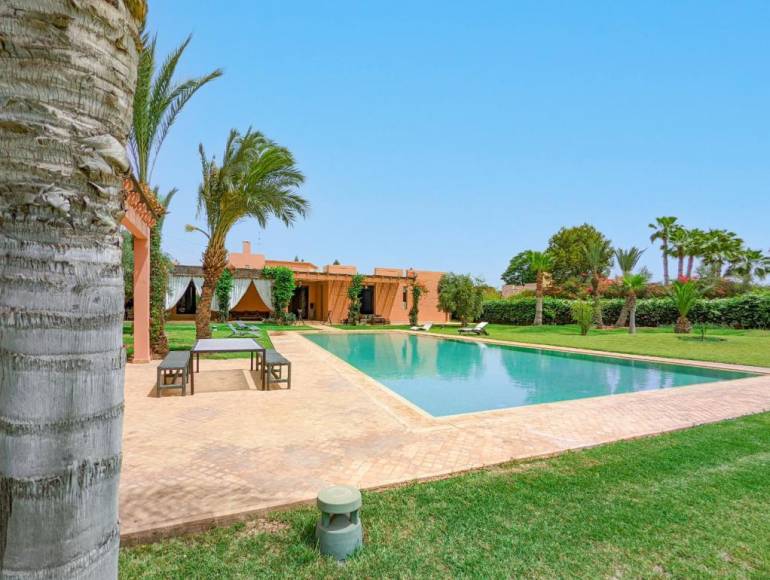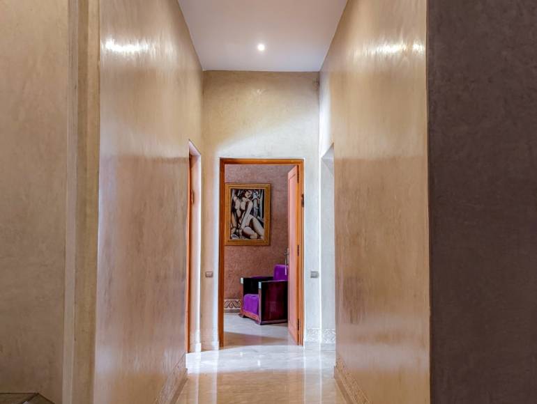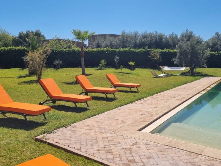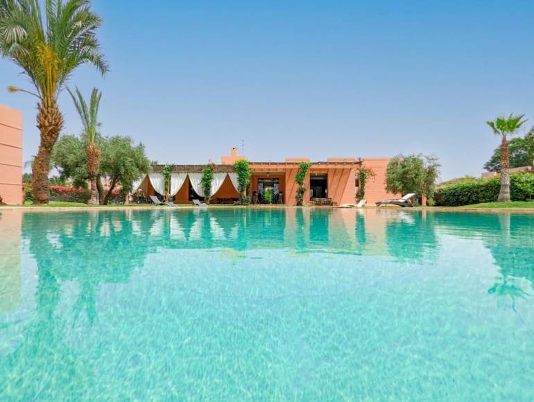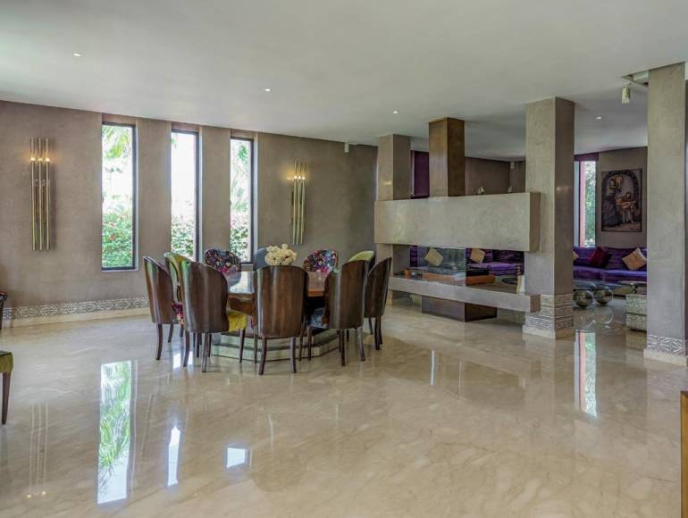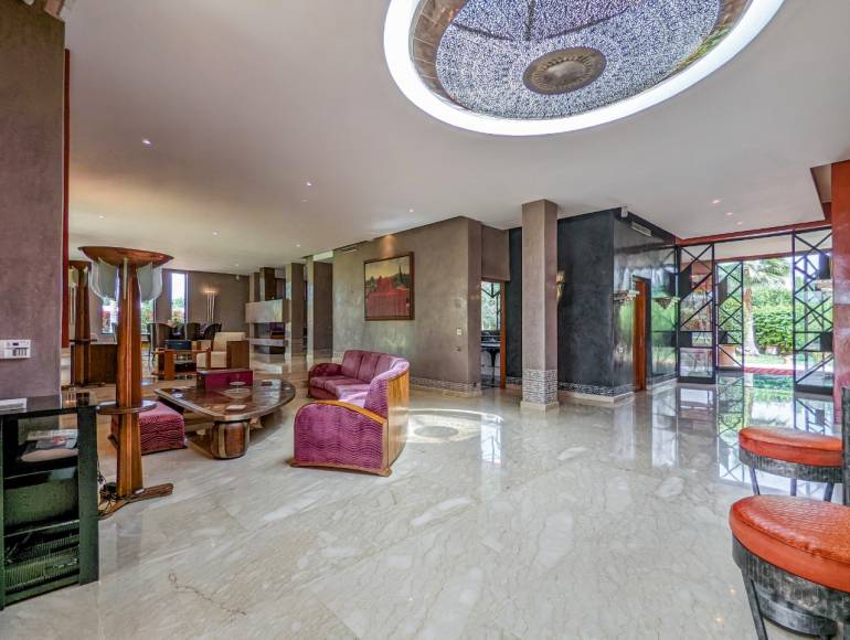 Cette villa au cachet unique est parfaite pour des vacances en famille ou entres amis. Tres belle et tres fonctionnelle, elle est située a 5 minutes des Golfs d'Amelkis, Al Maaden, Golf royal et a 15 min du centre ville et de la place Jamaa El fna, de la Mamounia et de tous les endroits branches de l'Hivernage. A 15 min de la synagogue également.