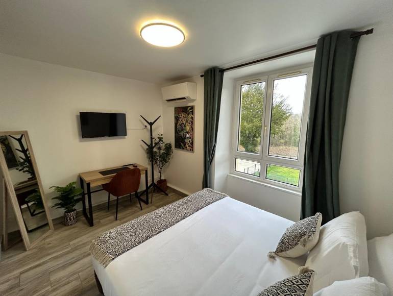 Les logements sont climatisés et équipés d’une télévision à écran plat.